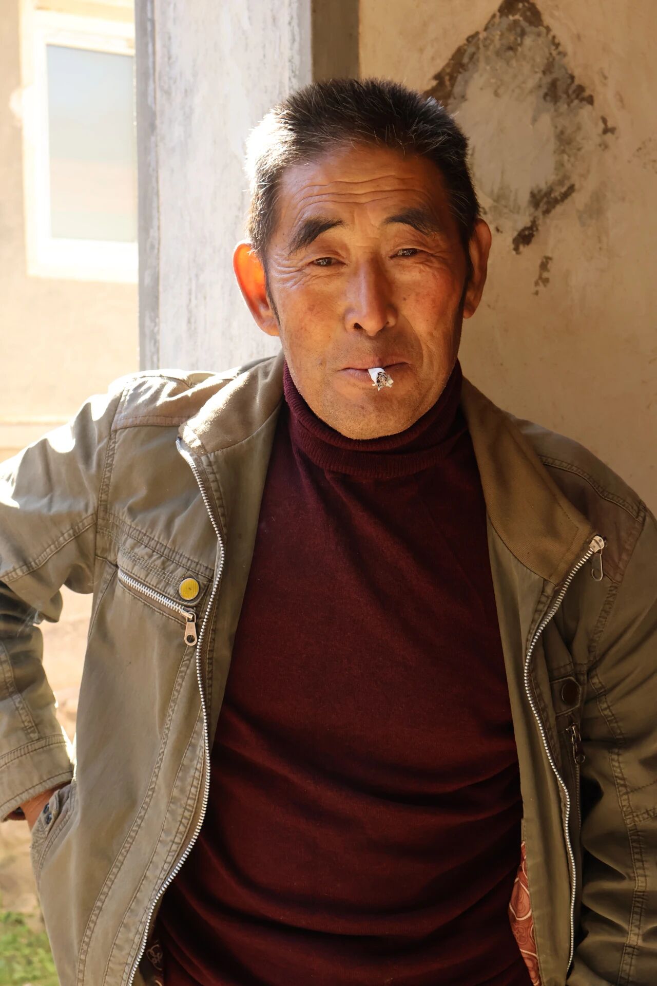 红春联褪了色,木门的纹里嵌着几十年的烟火气。伯伯站在门廊阴影里,指节上厚厚的茧是岁月的沉淀,袖口沾的灰是灶膛溅出的火星。这门里的日子,是春联上的旧字,是柴火锅里煮熟的米汤,是他低头时,额角白发蹭过的那缕慢时光。