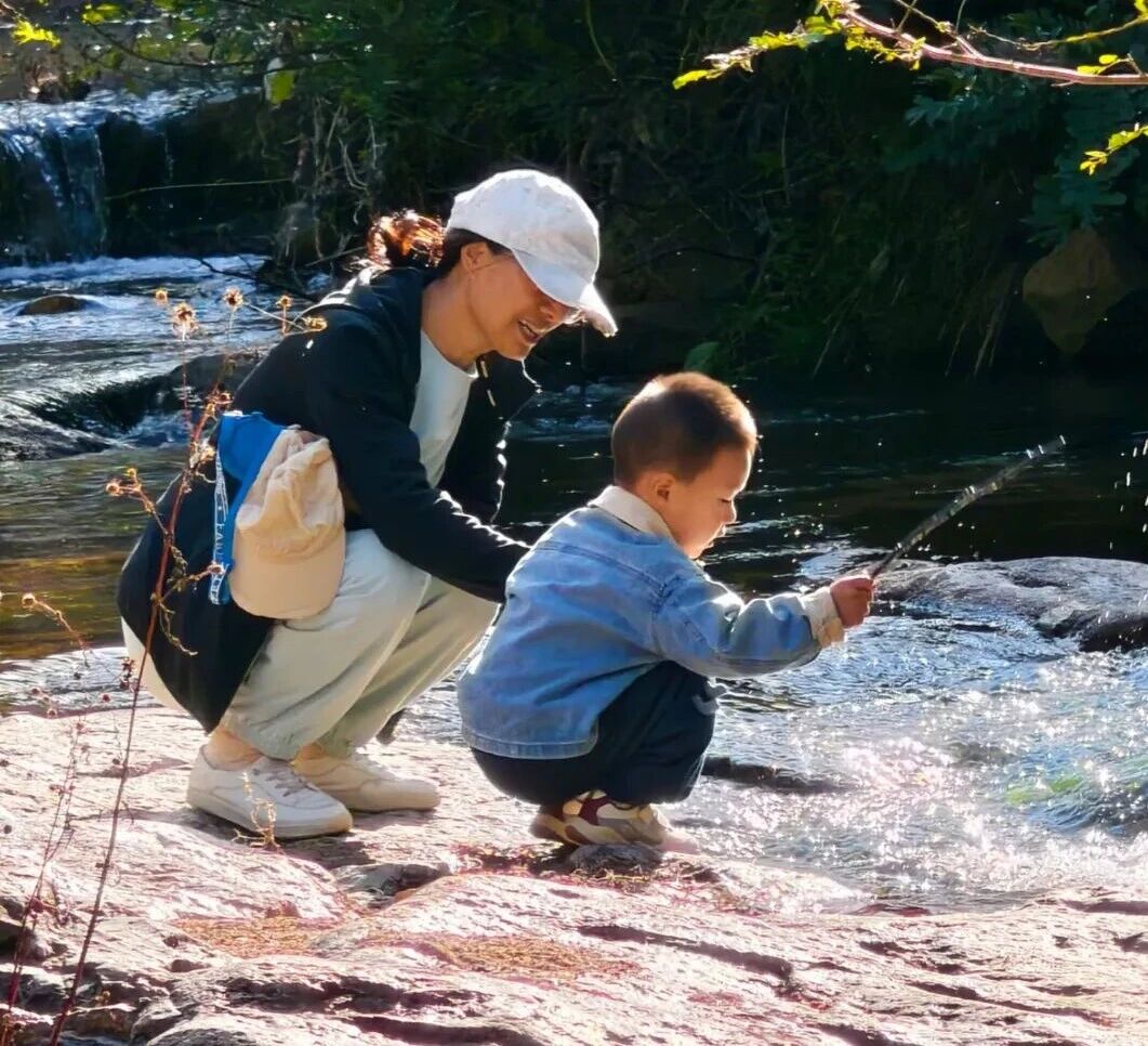 山间的泉水淌得哗啦啦响,一位妈妈正牵着孩子往溪边凑。妈妈没有说话,只将手轻轻贴在他小小的身后,掌心绷紧,像一张无形的网,把稚嫩的孩子保护起来。秋意渐凉,可母爱始终温暖,镜头里纷飞跳跃的水花都仿佛被这份关爱感化,带上了几分温度,诉说着最朴素也最动人的母爱。