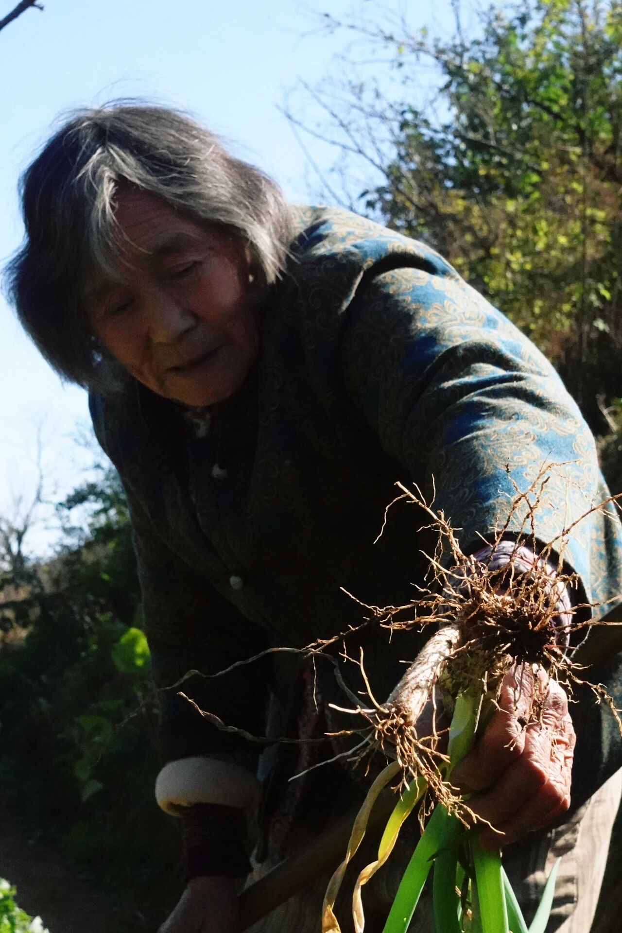 奶奶弯着腰,指尖攥着刚挖的葱根,阳光洒在鬓角的白发上,落在她肩头,时间衬着这双摸过四季的手,仿佛也跟着慢了下来。奶奶粗糙的手掌拔出的是葱叶的根须,种下是对明天的希望。