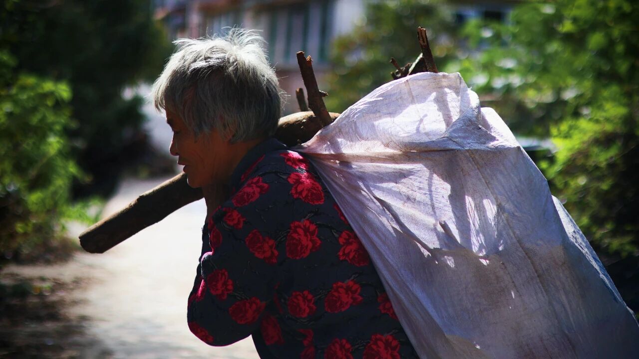 肩头的柴棍压出浅痕,奶奶背着半袋刚拾的柴火往家走。塑料袋晃着碎光,鬓角的白发沾着草屑,脚步踩得稳稳当当。肩上的重量是对家庭的承担,路边的草木往身后退,渐渐只留下她辛勤的背影。这条路走了大半辈子,前方是家的方向。风轻轻的吹着,阳光也愈发耀眼了。