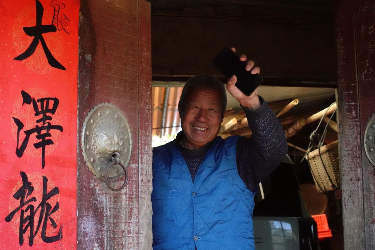 老木门的铜环磨得发亮,他攥着手机举过头顶,笑意满满的挥手送别。门里的柴灶还温着,檐下的竹篮还晃着,连他这一笑,都像院儿里晒透的太阳,暖得让人回头想再看一眼。这一举一动是老院子里最实诚的挽留,也触动着新传学子的思乡情。
